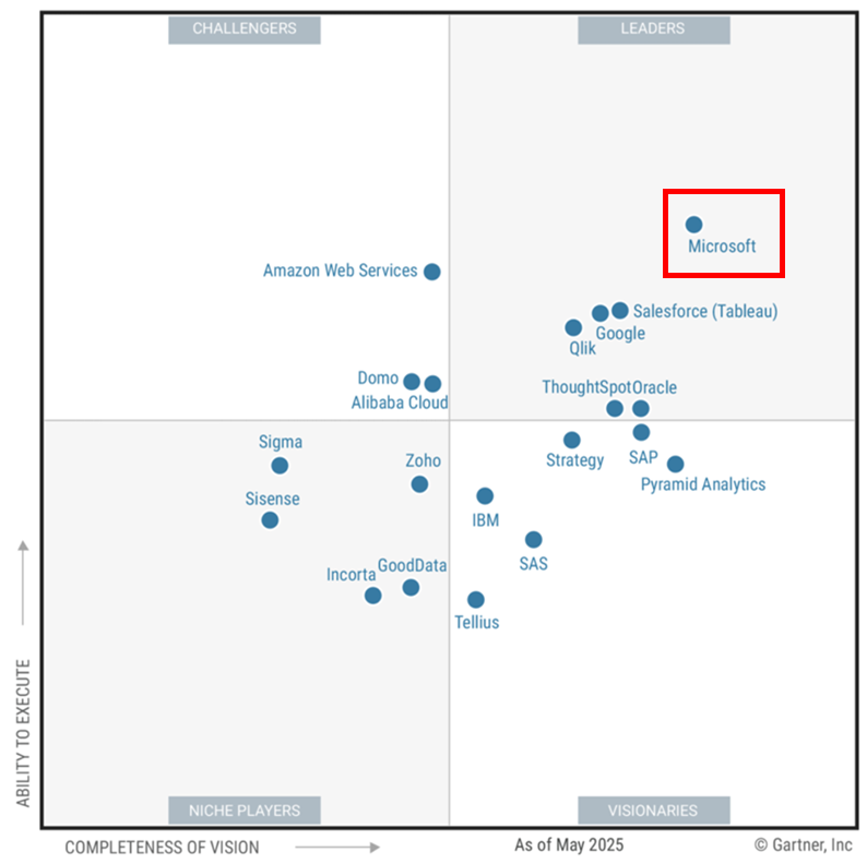 The Business Intelligence platform is included across all Modules - built on Microsoft SQL Server with Microsoft SQL Server Reporting Services (SSRS), one of the world's leading Business Intelligence and Analytics Platforms (See Figure 1 at right). PMWeb's use of SSRS operates in conjunction with Microsoft PowerBI. The 2025 Gartner Magic Quadrant for Business Intelligence and Analytics Platforms has a limited number of global leaders – of these, Microsoft BI is #1 for both completeness of vision and ability to execute.